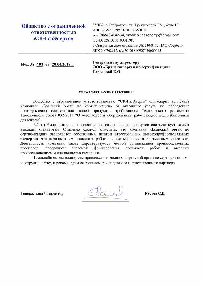 ООО Брянский орган по сертификации